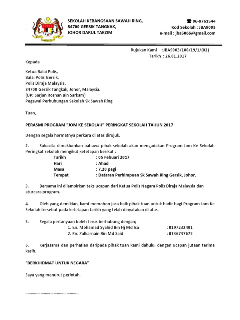 Surat Jemputan Program Jom Ke Sekolah Skpm Polis